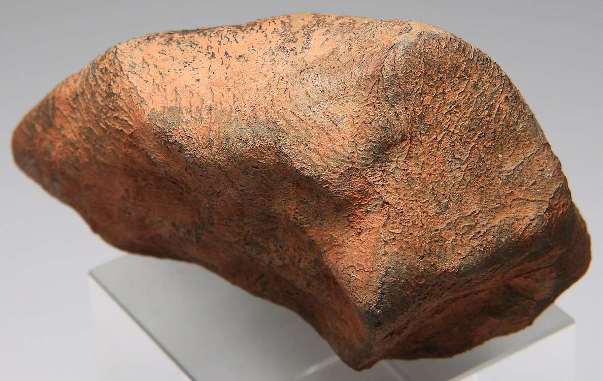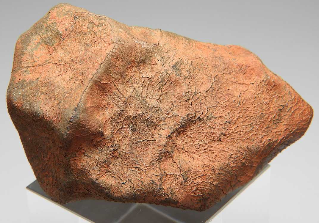 ミルビリリ隕石は落下目撃されたEucriteエイコンドライト(HED隕石)。Caに富むため溶融表皮が特徴的で内部は斜長石の白色と黒色の輝石部分が混在しています。回収地点の鉄分を含む土壌で表面に赤茶色が見られます。母天体は小惑星ベスタと推定されています。未切断大型品。
