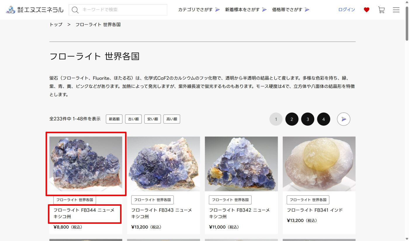 また、商品の新着順・古い順 価格の安い順・高い順に並べ替えができます。