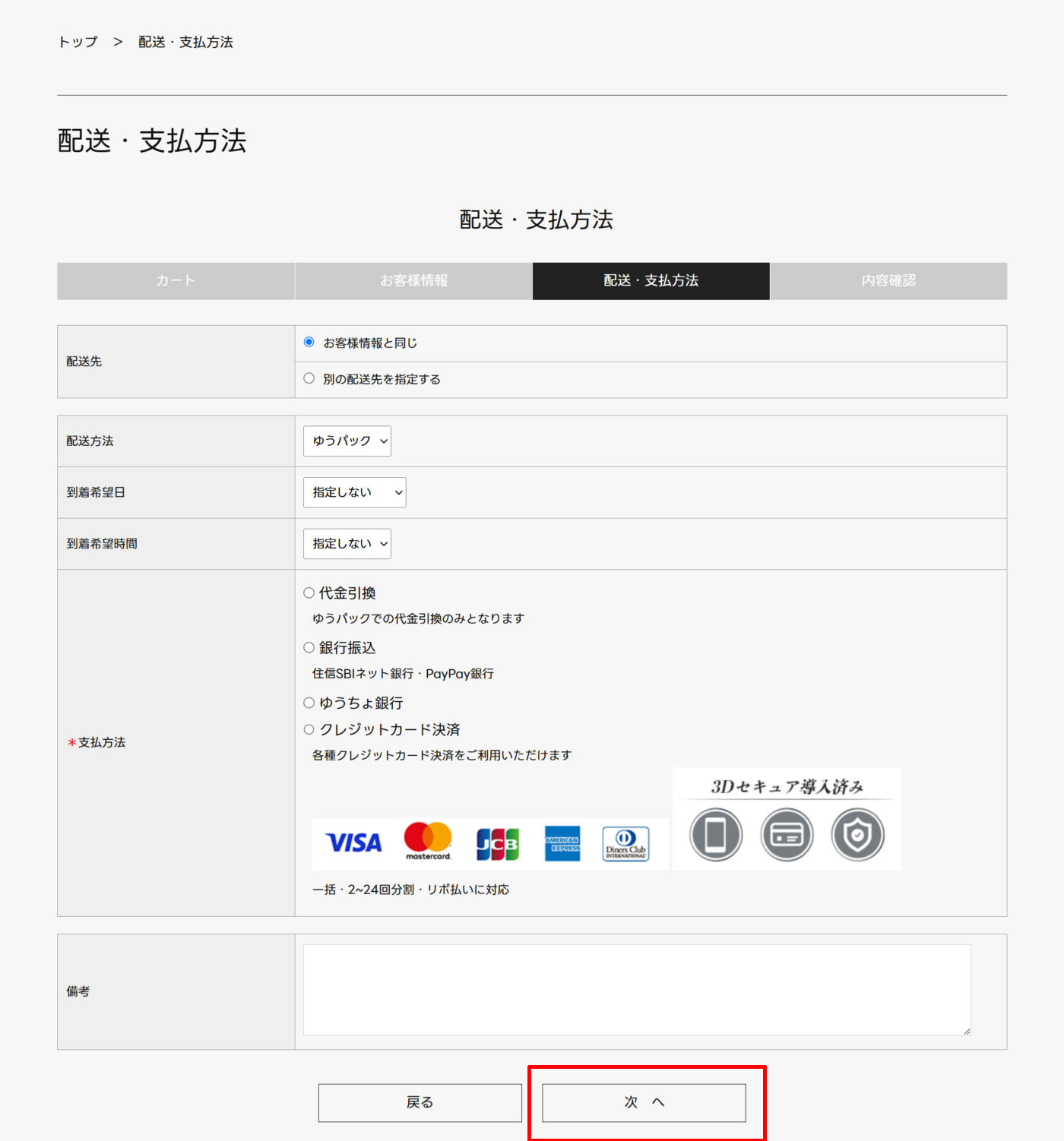 『お支払方法』でご希望のお支払方法をご選択ください。