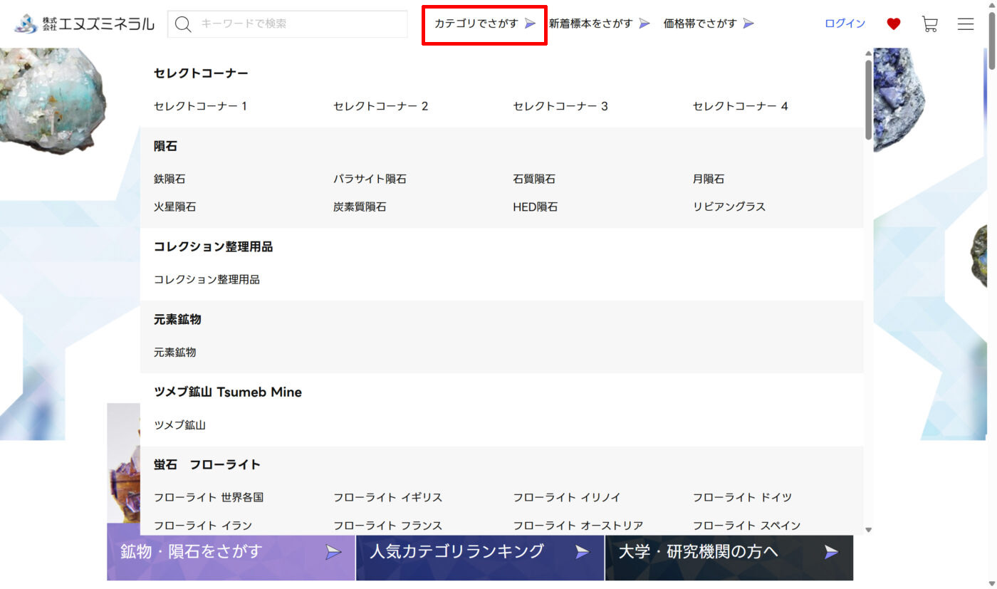 上部メニューの「カテゴリでさがす」をクリックすることで、カテゴリ検索が行えます。