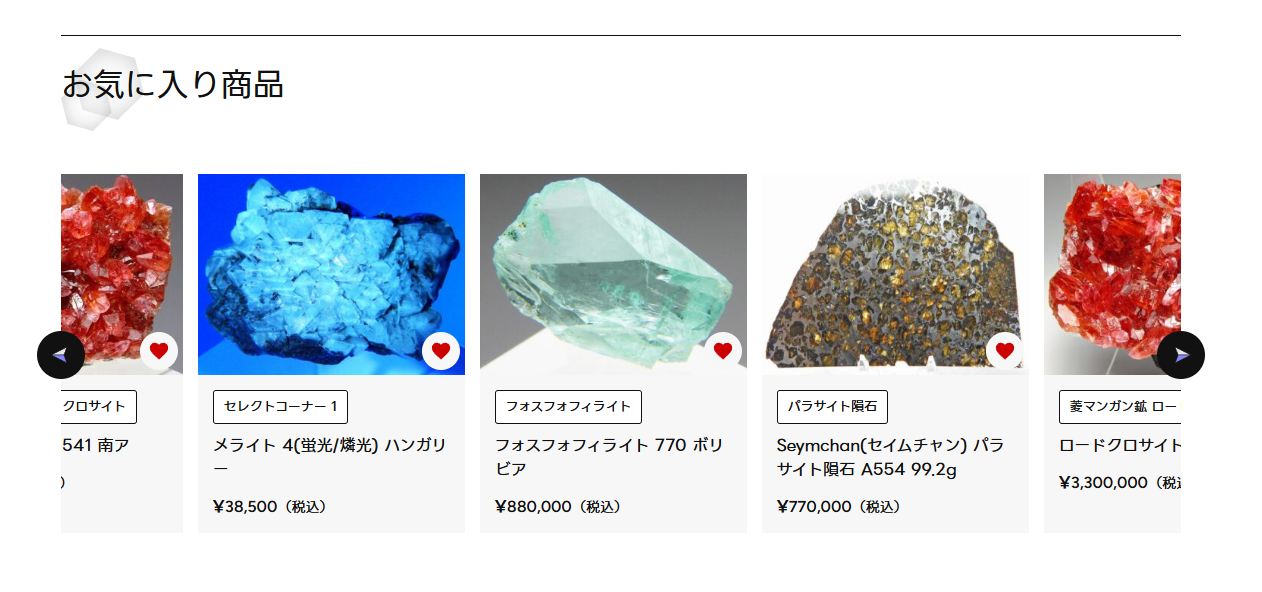 「お気に入り商品」は会員登録されたお客様が、商品写真にある❤マークを