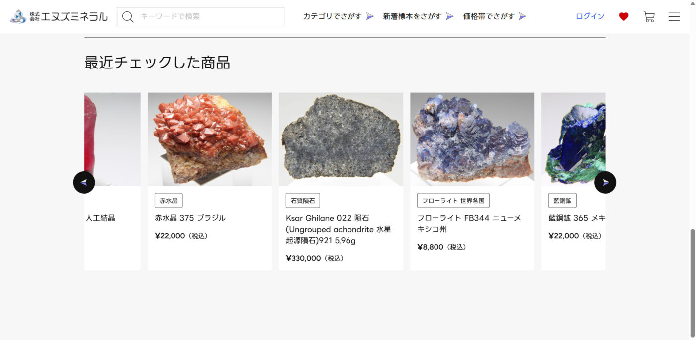 「最近チェックした商品」は、直近で閲覧した商品が表示されます。