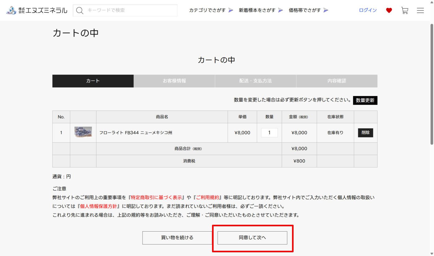 カートの中身を確認したい場合は、右上の「カートマーク」をクリックします。