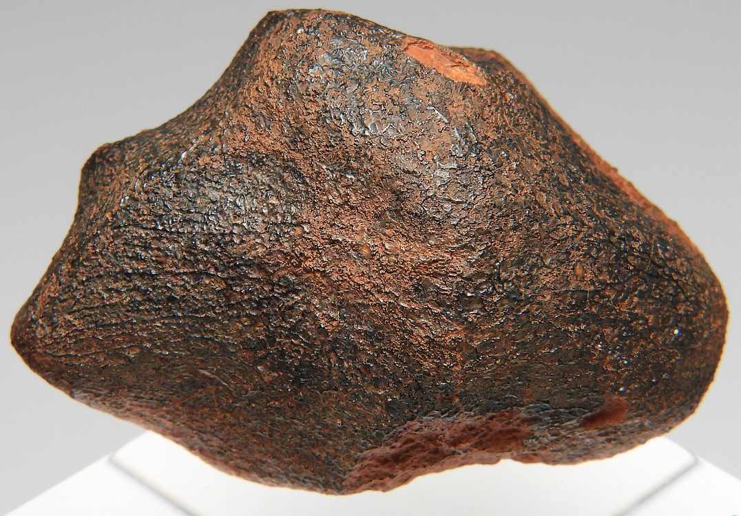 ミルビリリ隕石は落下目撃されたEucriteエイコンドライト(HED隕石)。Caに富むため溶融表皮が特徴的で内部は斜長石の白色と黒色の輝石部分が混在しています。回収地点の鉄分を含む土壌で表面に赤茶色が見られます。母天体は小惑星ベスタと推定されています。未切断品。