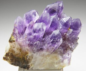 黄鉄鉱を伴った美しいアメシストの結晶群です。