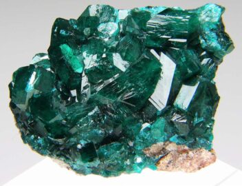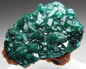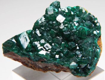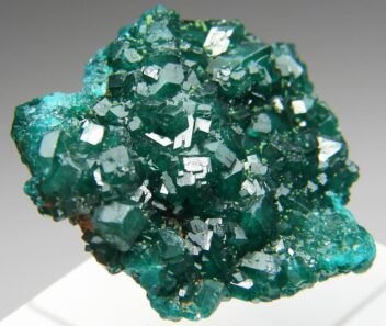 大変美しく艶やかな翠銅鉱の結晶群です。