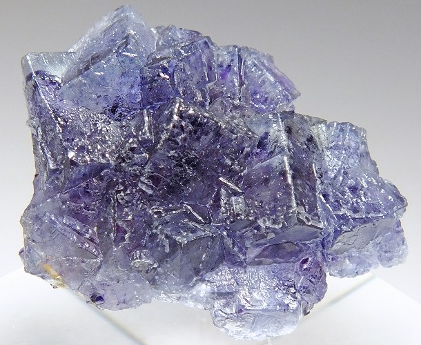 大変美しいマリンブルーとゾーニングを持つ結晶群。紫外線長波で蛍光し白熱灯下でカラーチェンジが見られます。