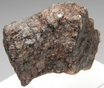 ミルビリリ隕石は落下目撃されたEucriteエイコンドライト(HED隕石)。Caに富むため溶融表皮が特徴的で内部は斜長石の白色と黒色の輝石部分が混在しています。回収地点の鉄分を含む土壌で表面に赤茶色が見られます。母天体は小惑星ベスタと推定されています。未切断大型品。