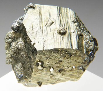 滑石中に産する黄鉄鉱のキュービック。外部に多くの結晶が見られます。