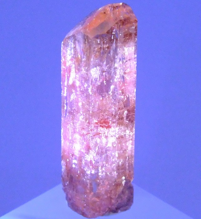 数少ないインペリアルトパーズの産地のひとつで非常に美しい単結晶です。紫外線長波で蛍光が見られます。