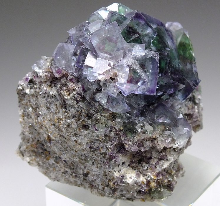 迷彩色の美しい結晶群。紫外線長波で蛍光し白熱灯下でカラーチェンジします。