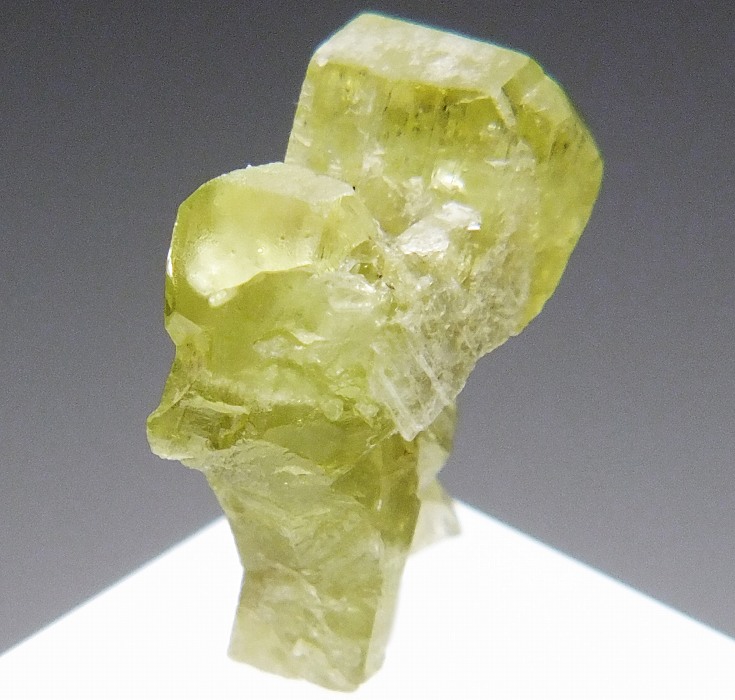 透明感のあるレモンイエローのクリソベリルの双晶です。