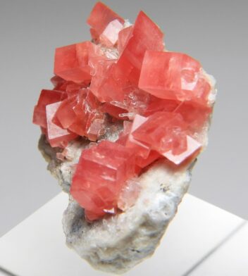 マンガン鉱体の空隙に成長した美しいロードクロサイト。フローライトが共生します。