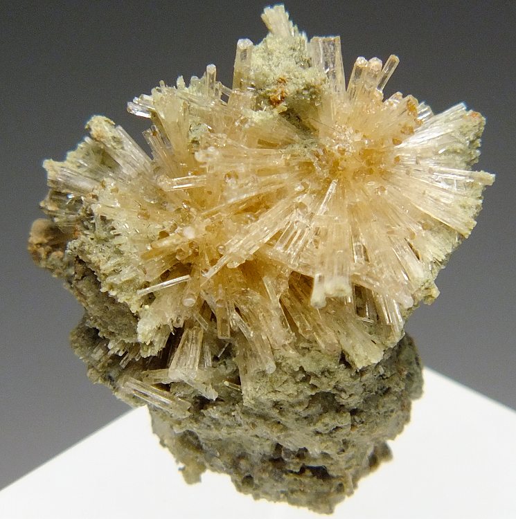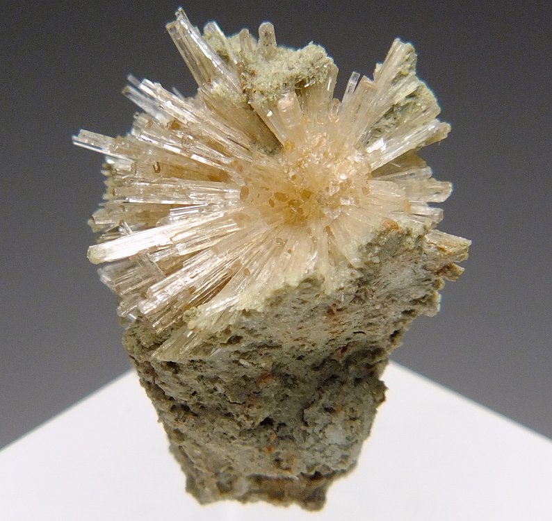 繊細な放射状結晶が綺麗な標本です。紫外線長波で蛍光します。