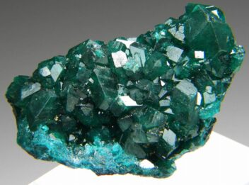 大変美しく艶やかな翠銅鉱の結晶群です。