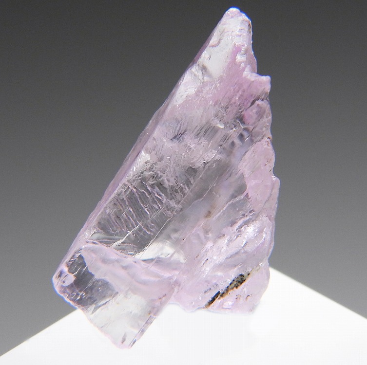 透明度の高いクンツァイトの結晶。紫外線長波で蛍光します。