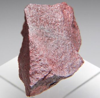 小規模試掘で産した辰砂をインクした石膏。鮮烈な赤色が美しい標本です。