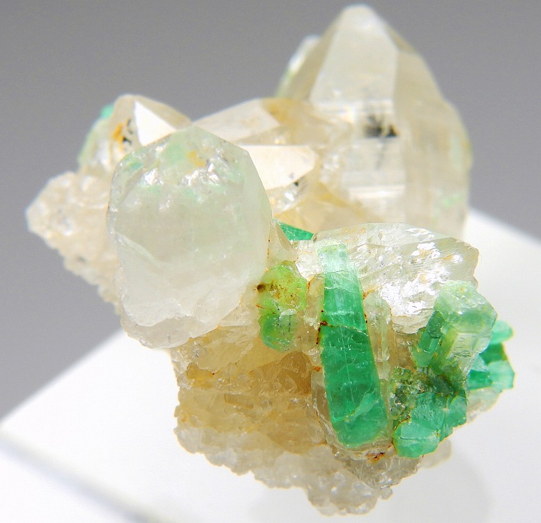 水晶と共生したエメラルド。一部は水晶にインクしております。