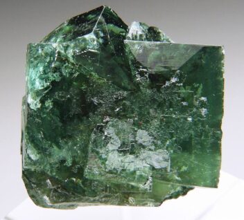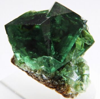 透明度の高い美しい貫入双晶群で方鉛鉱を伴います。太陽光と紫外線長波で蛍光します。