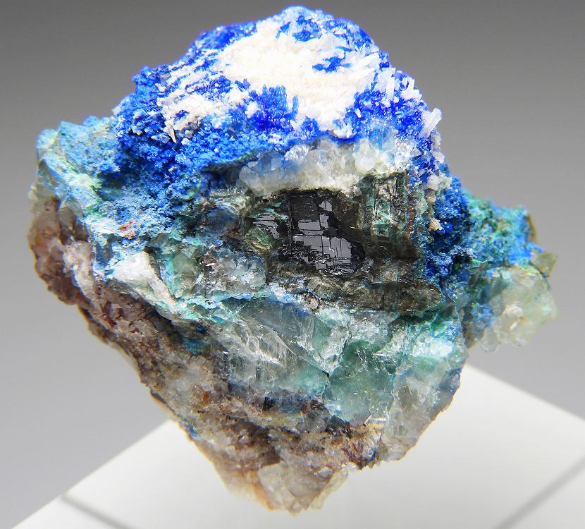方鉛鉱上に青鉛鉱が成長した立派な結晶群です。