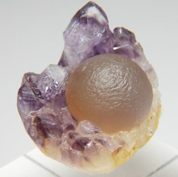 水晶に伴ったブルーパープルの八面体結晶群。白熱灯下でカラーチェンジが見られます。キャビネットサイズ。