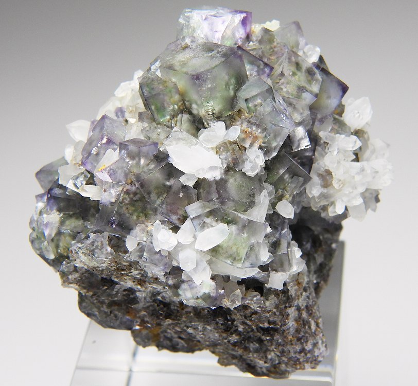 迷彩色の美しい結晶群。紫外線長波で蛍光し白熱灯下でカラーチェンジします。