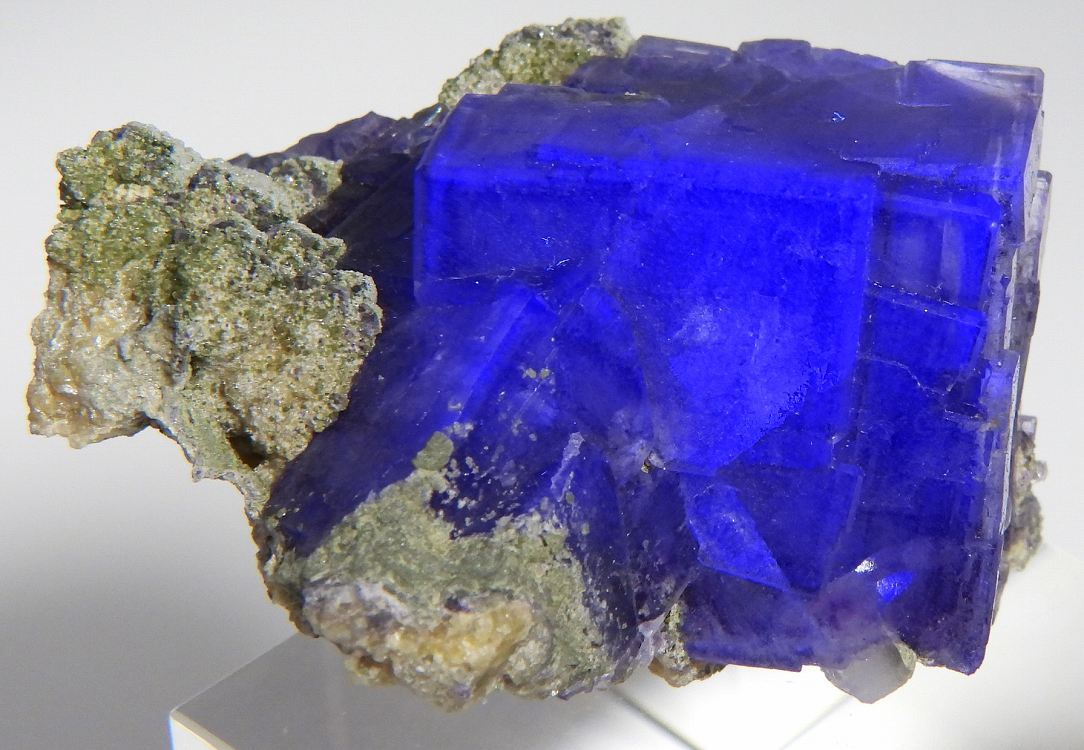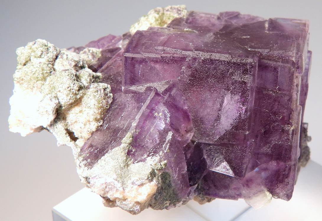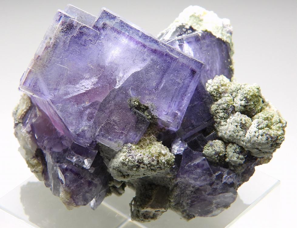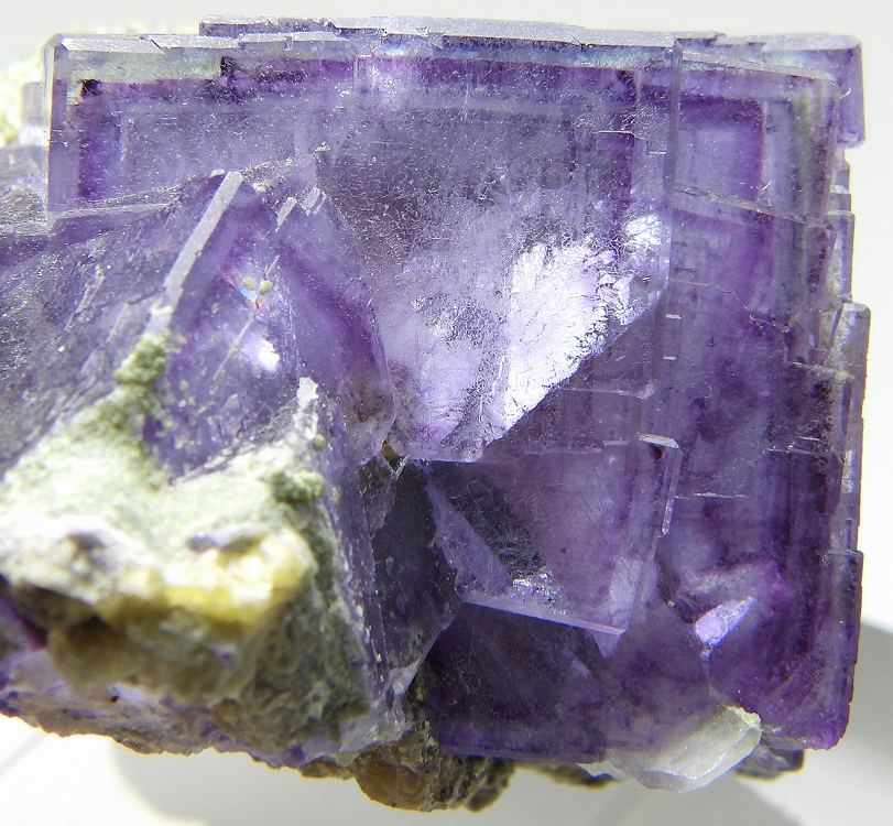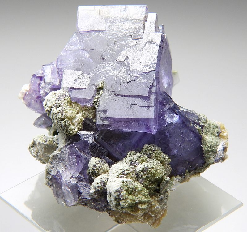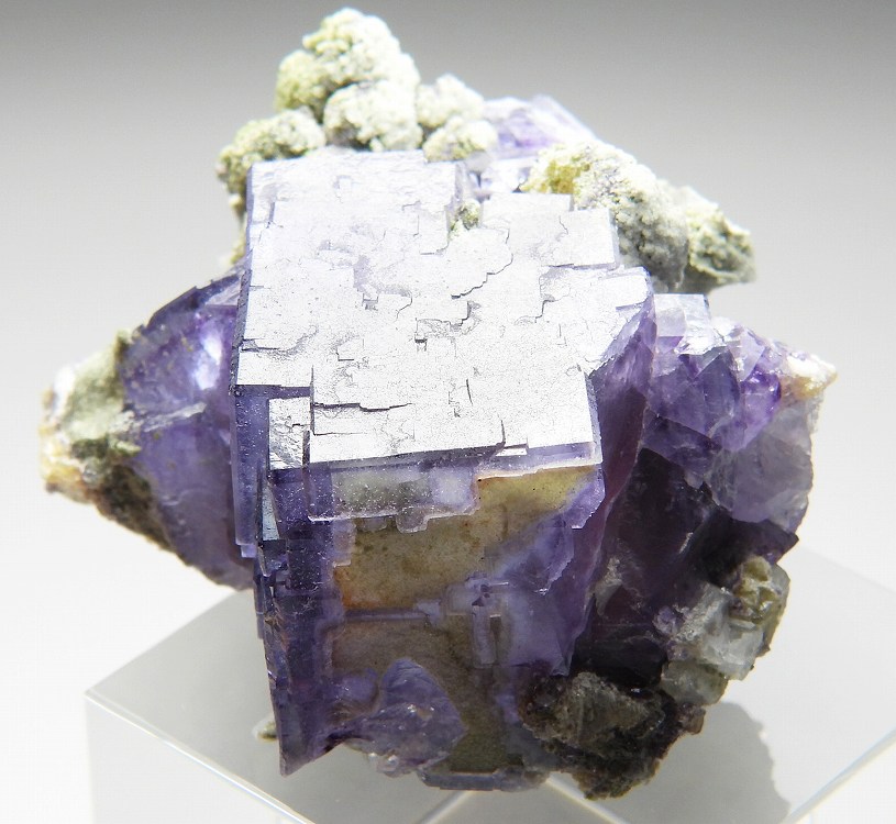ゾーニングの美しい往年のヤオガンシャン産フローライトです。紫外線長波で蛍光し白熱灯下でカラーチェンジします。