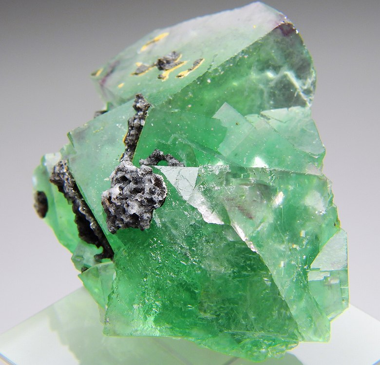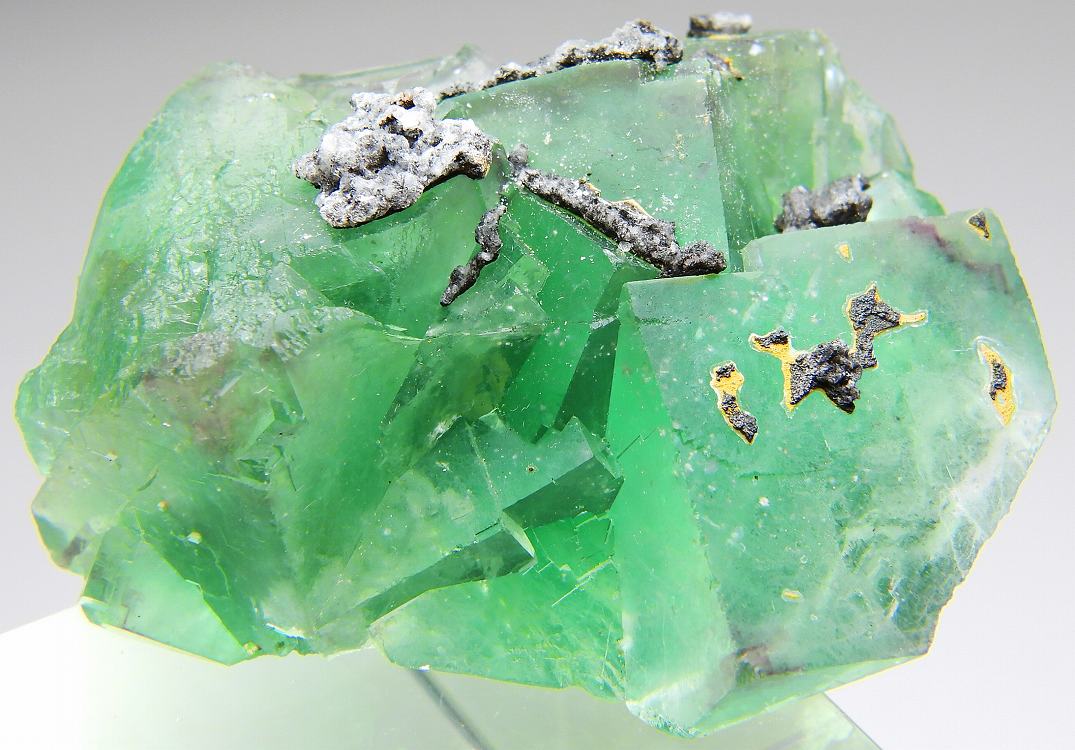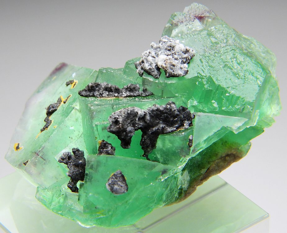 透明度の高い美しい結晶群。紫外線長波で蛍光します。