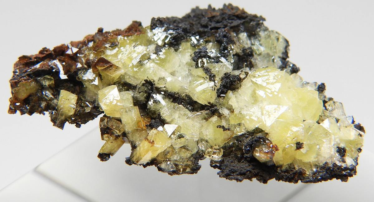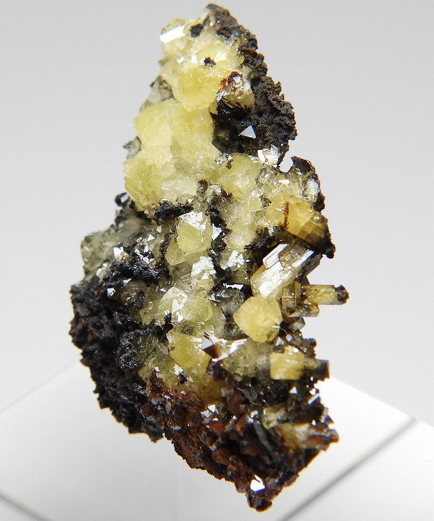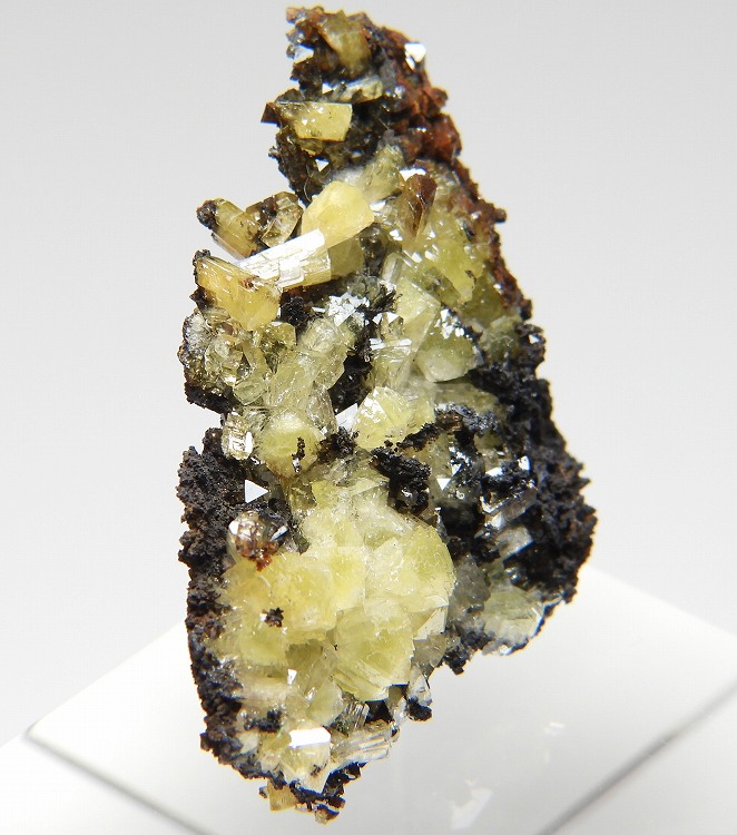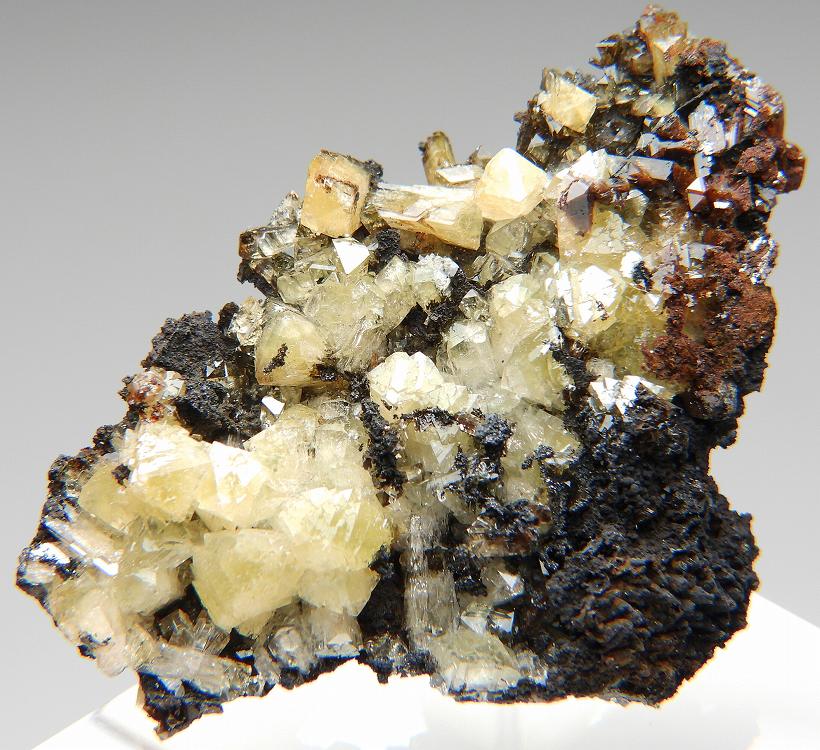 美しいアダム鉱の結晶群。紫外線長波で蛍光を発します。