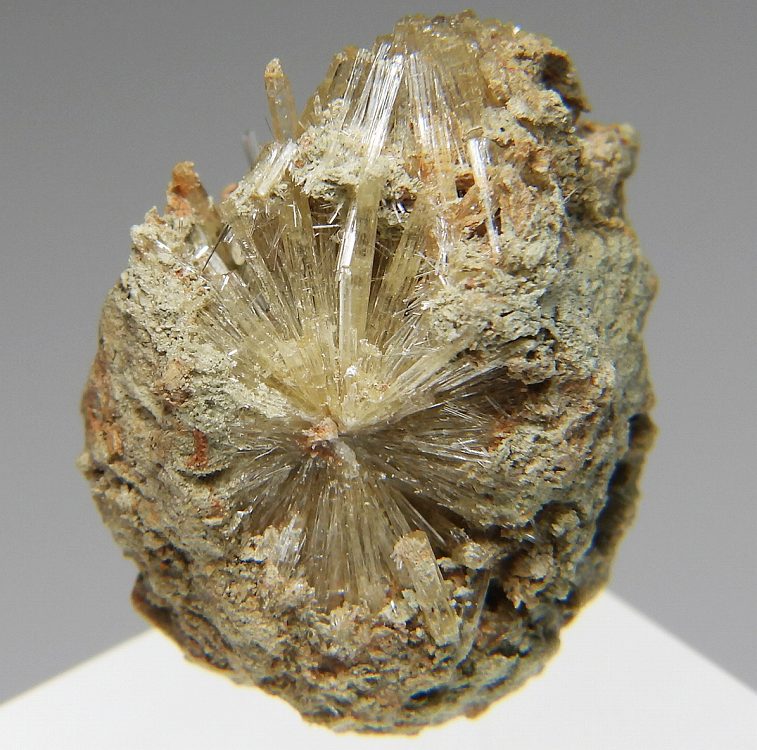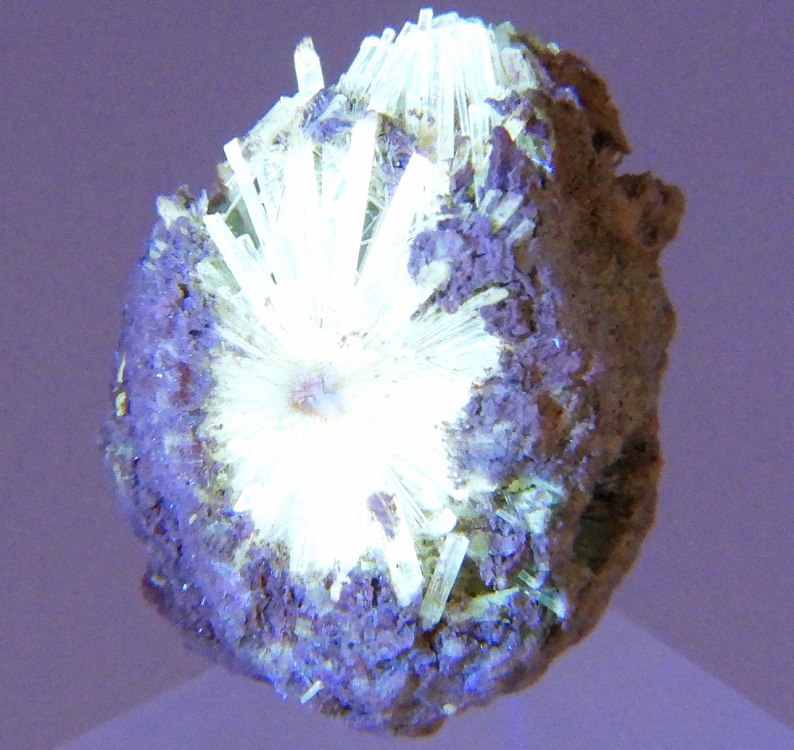 繊細な放射状結晶が綺麗な標本です。紫外線長波で蛍光します。