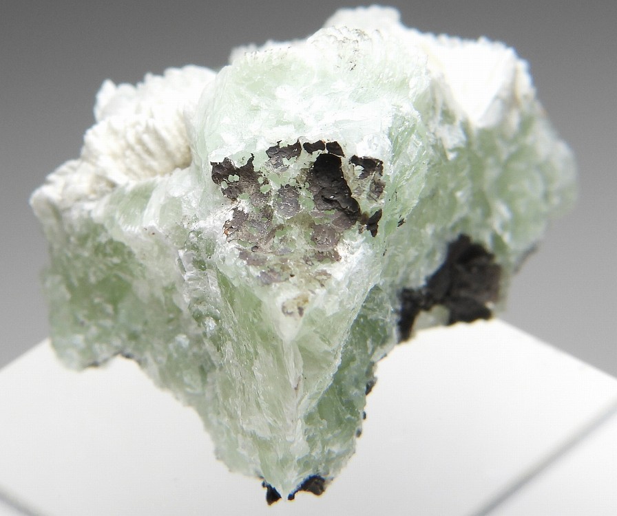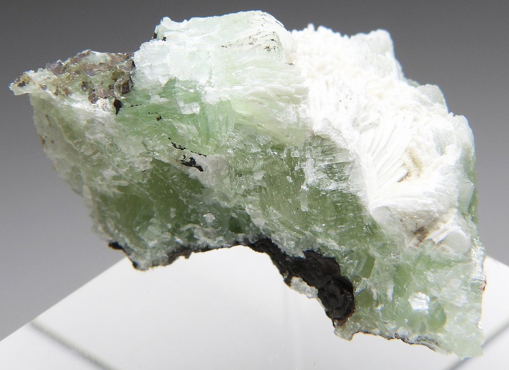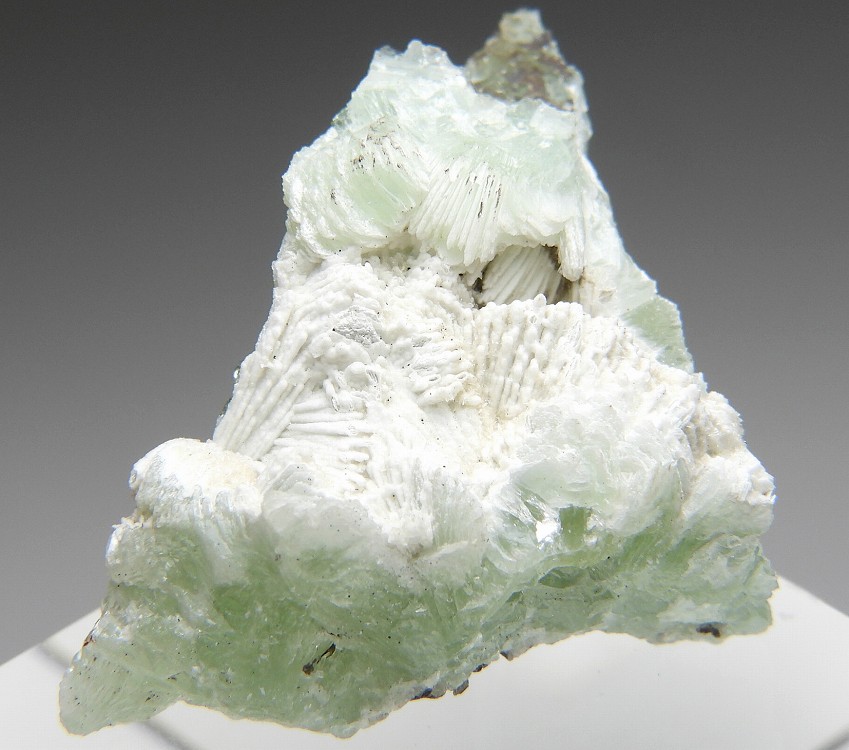 産出が稀な含水燐酸塩鉱物でこの産地では薄水色と薄緑色の放射状結晶で産します。紫外線長波で蛍光します。
