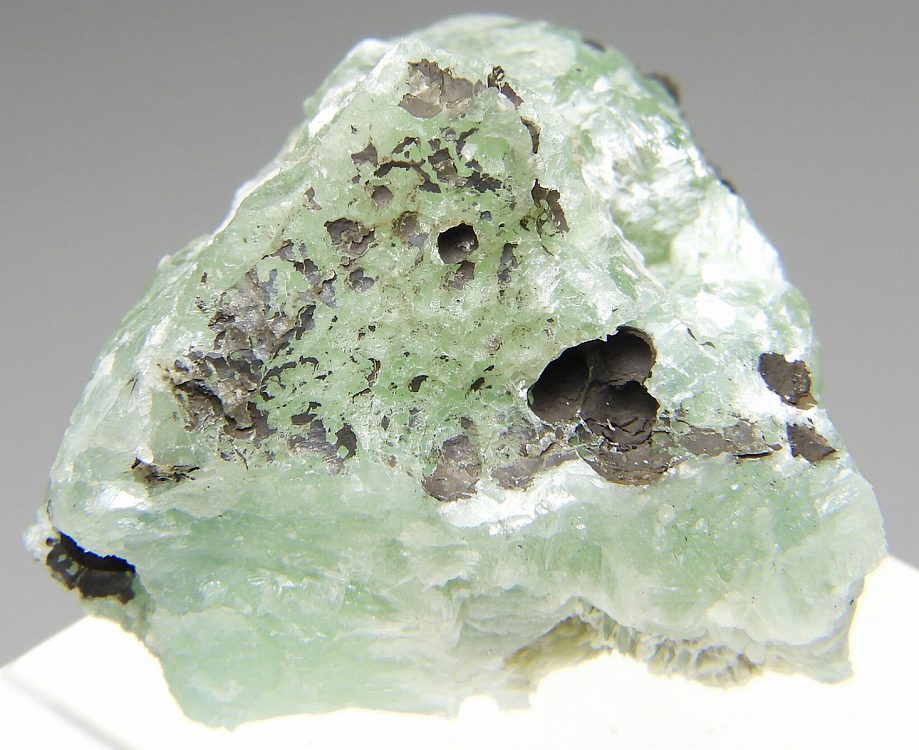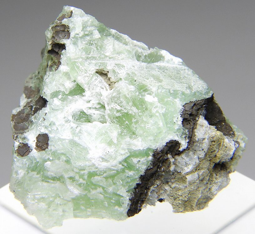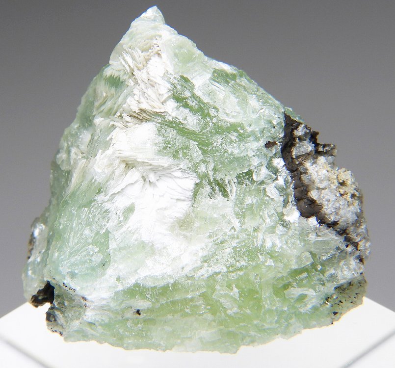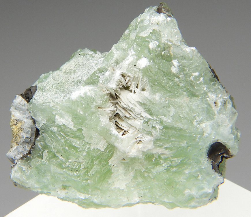 産出が稀な含水燐酸塩鉱物でこの産地では薄水色と薄緑色の放射状結晶で産します。紫外線長波で蛍光します。