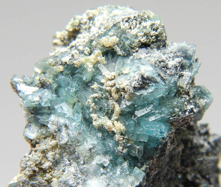 透明度の高い硼灰石(Borcarite)の極めて美しい結晶群です。