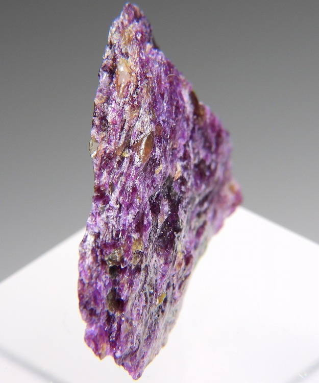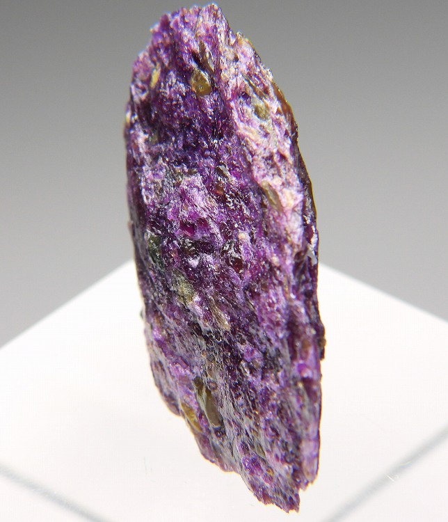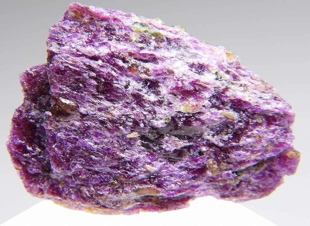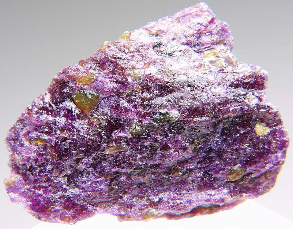 ハイドロタルサイト族で蝋脂感のある濃色パープルのアイオワ石です。