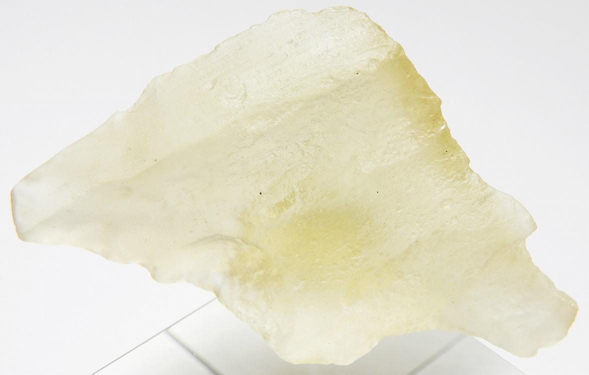 エジプトからリビアにかけての砂漠地帯で発見されたインパクトグラス。約2600万年前の隕石の衝突により生成したという説が有力です。黄色〜黄緑色に淡く色づいており内部にクリストバル石を含みます。現在リビアングラスの持ち出しは禁止されており高騰しつつあります。