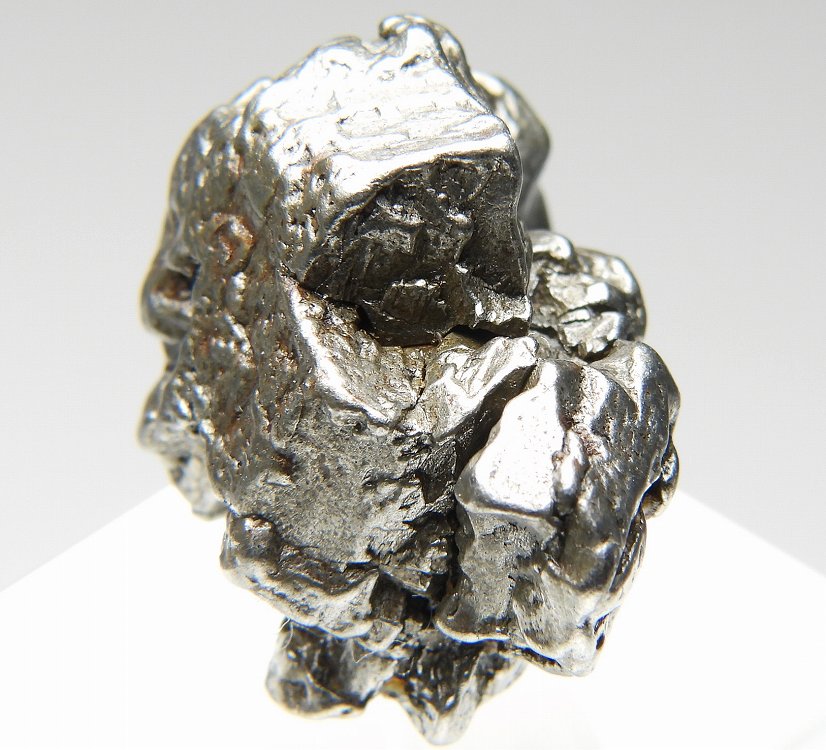 切断面に黒っぽく見える珪酸塩鉱物を含む特徴のあるグループIAB-MGに分類される鉄隕石です。切断研磨面を酸処理すると粗粒のウィドマンシュテッテン構造があらわれます。未切断標本。