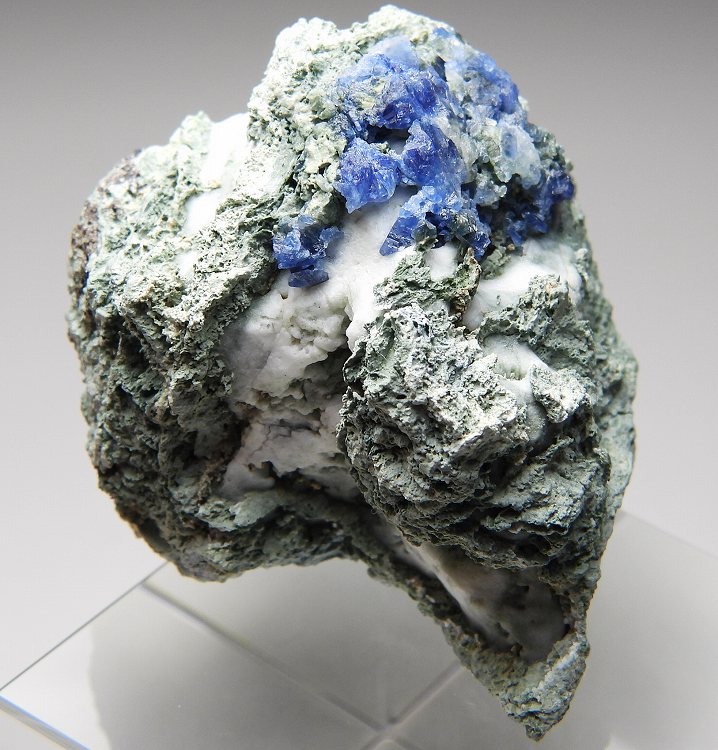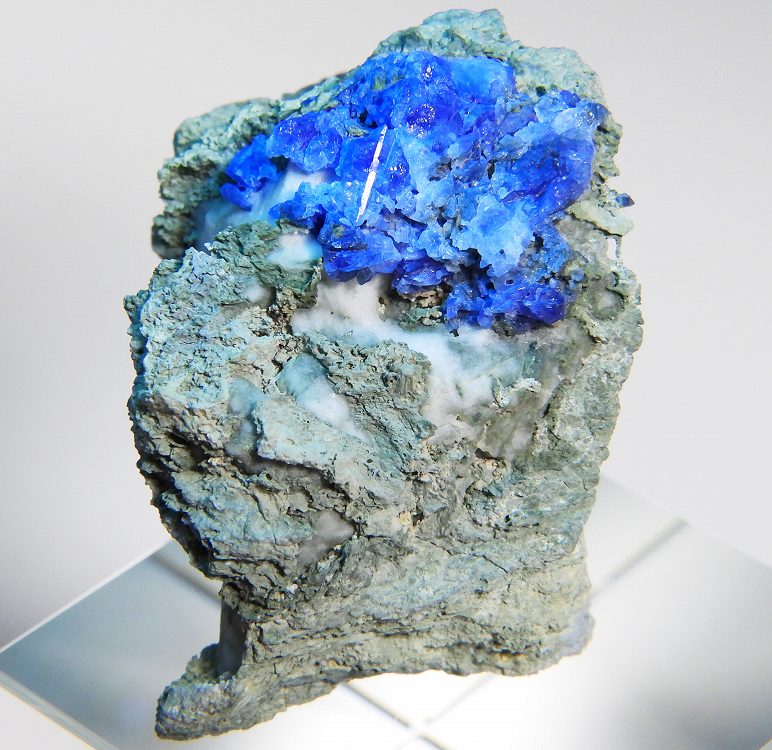 美しいベニト石の結晶群です。紫外線短波で明るい蛍光を発します。