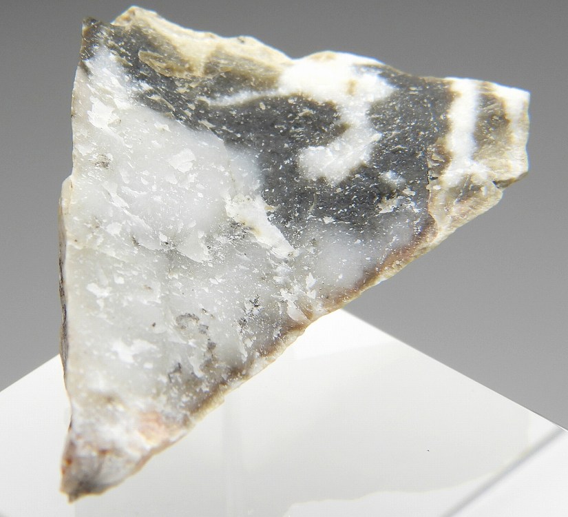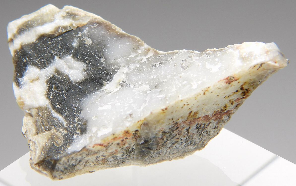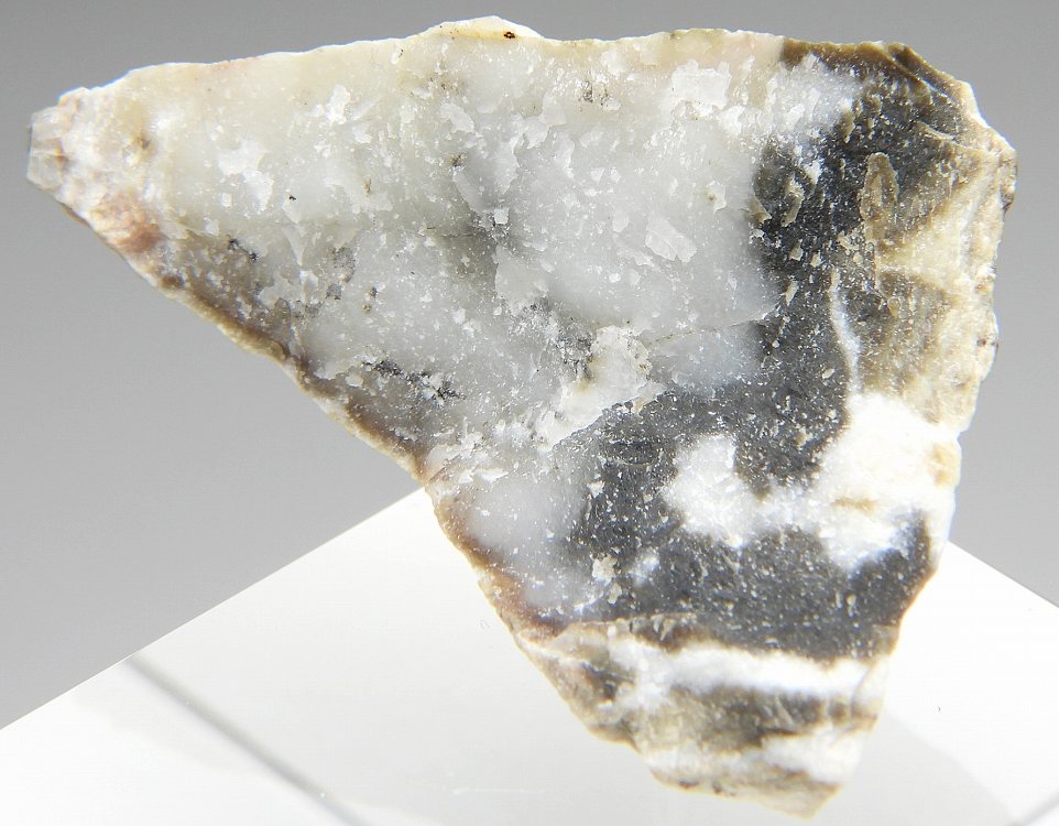 LiとAlの珪酸塩鉱物で少し透明感のある塊状で産します。紫外線短波で淡い赤色の蛍光を発します。