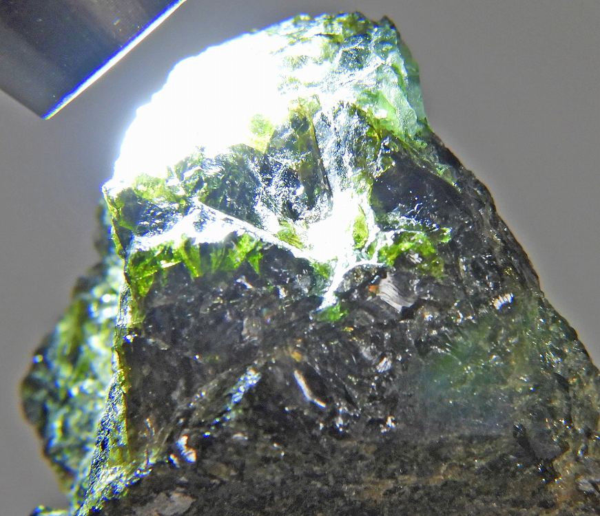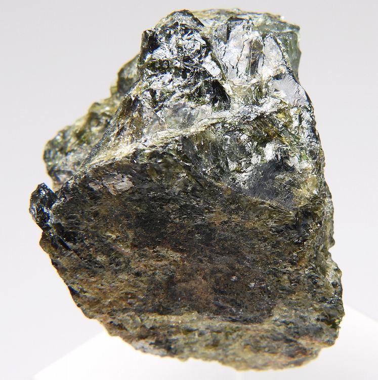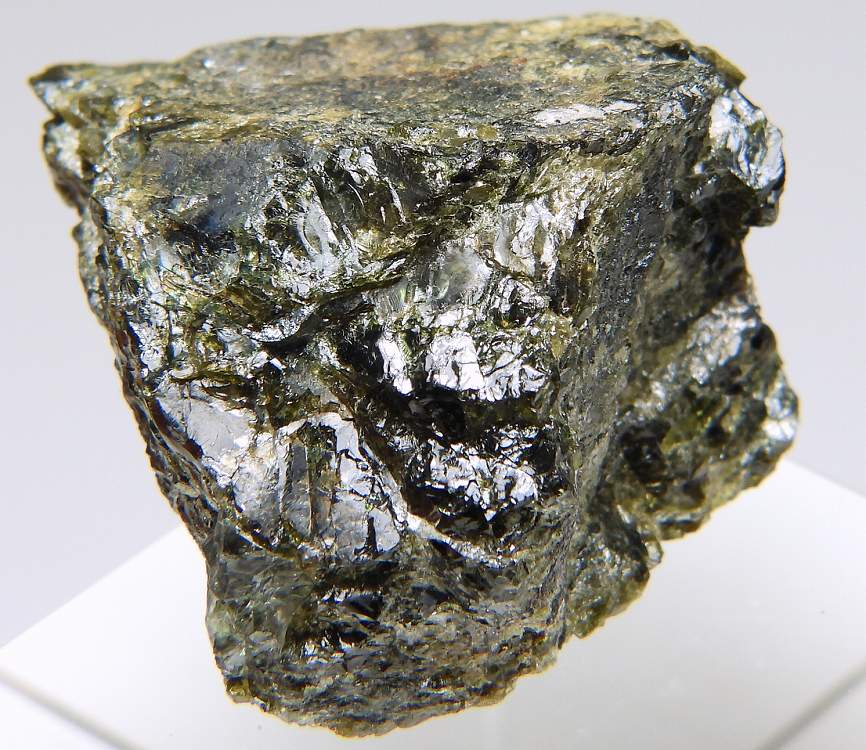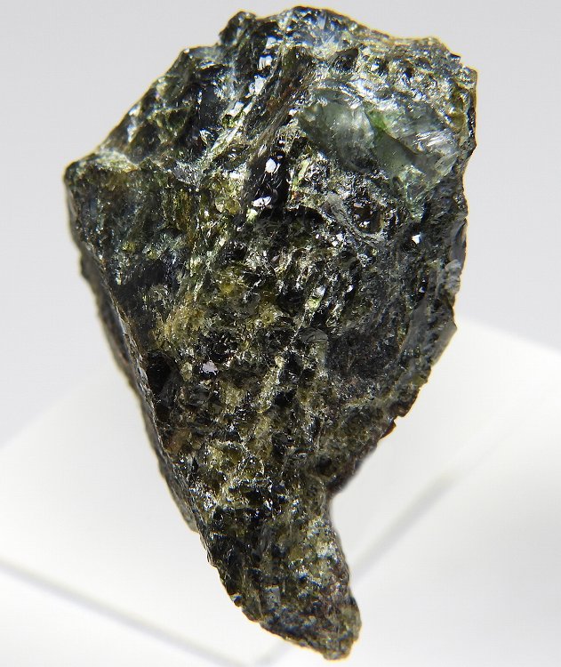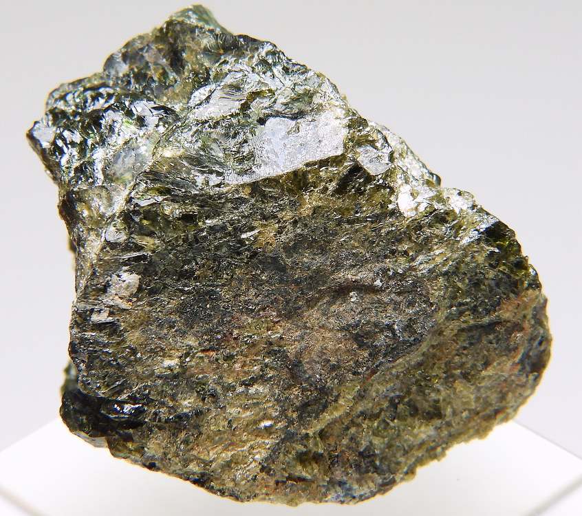 カリウムと鉄リッチタイプの珍しいリン酸塩鉱物。透明感のある緑褐色の標本です。