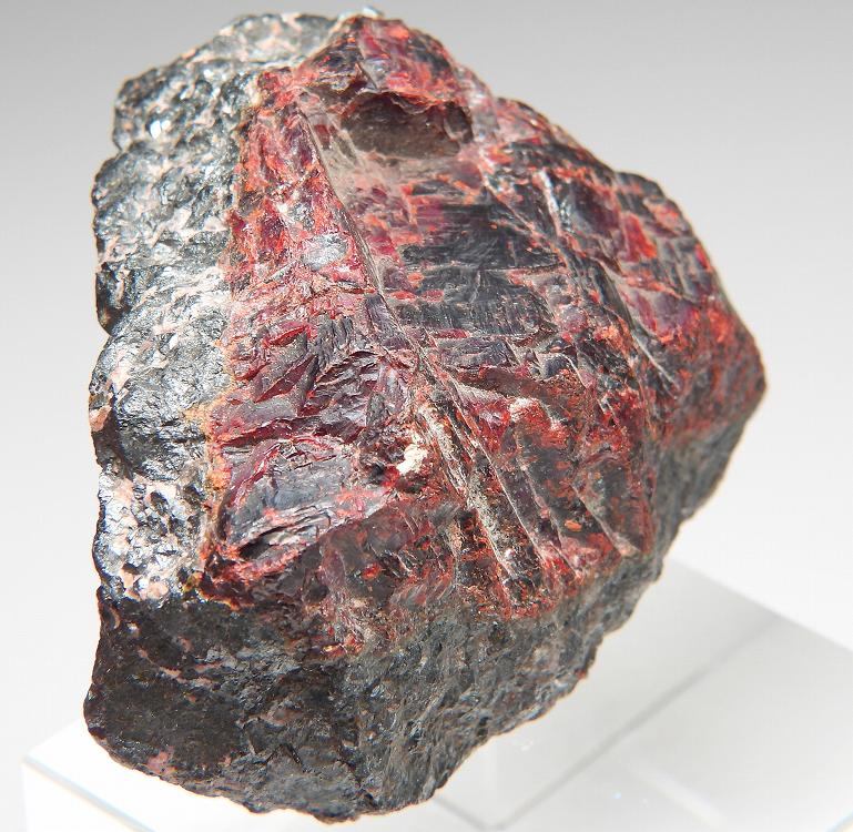 フランクリン鉱山産の高品位な紅亜鉛鉱です。フランクリン鉄鉱が共生します。