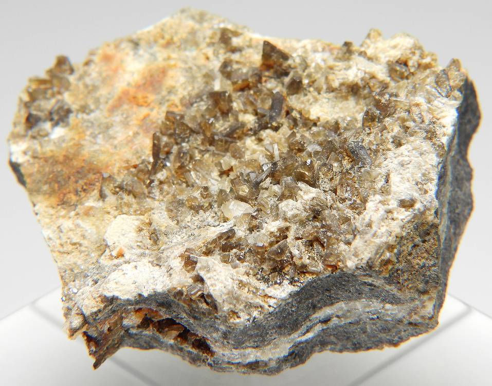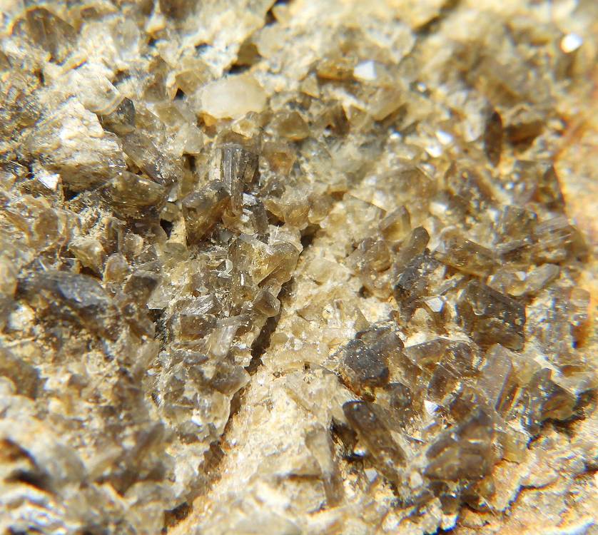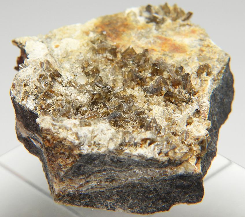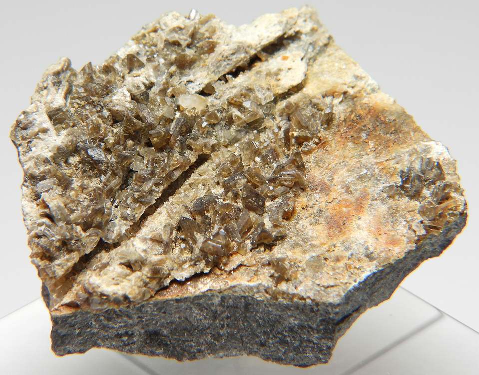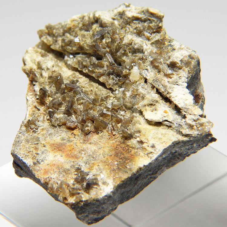カリウムと鉄リッチタイプの珍しいリン酸塩鉱物。透明感のある茶褐色の標本です。