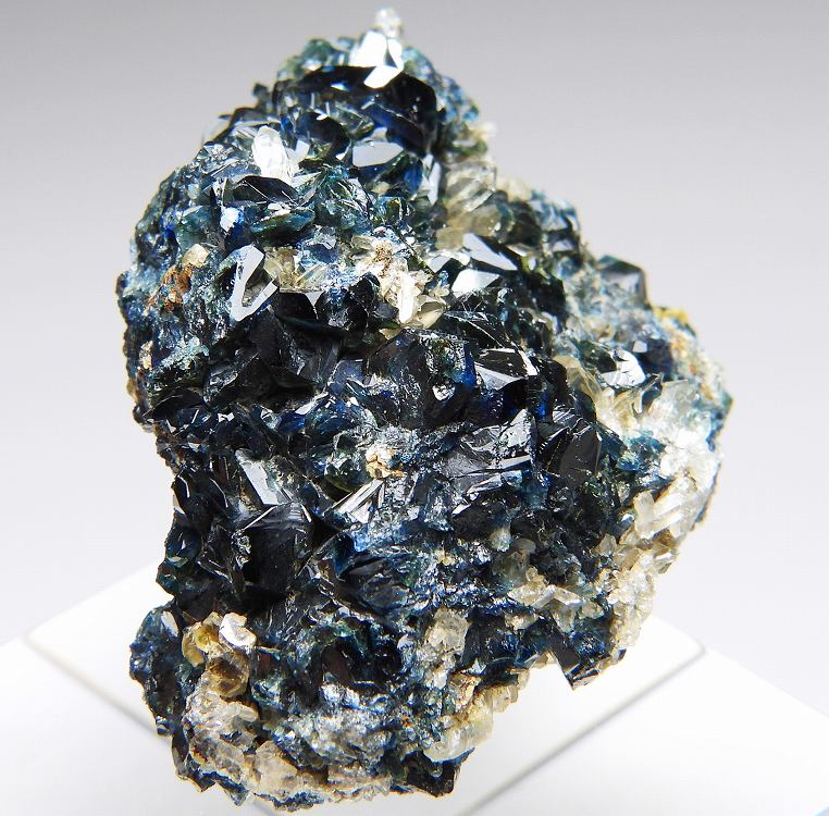 大変美しい天藍石の結晶群。透明度の高い大きな結晶が群生します。