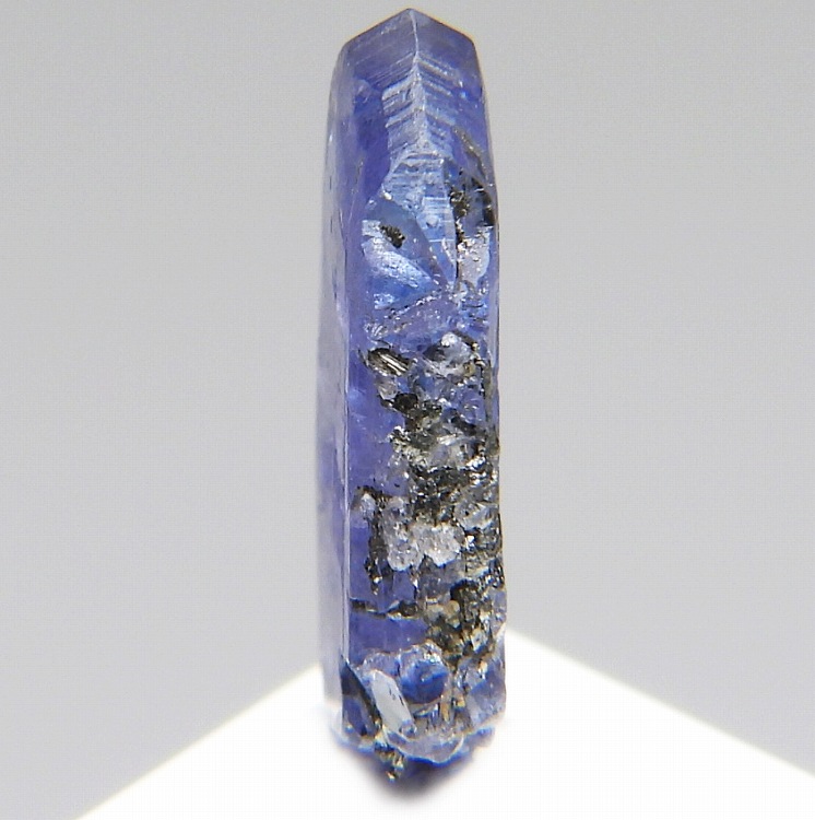 大変美しい多色性が明瞭なタンザナイトの結晶です。通常光源下で撮影。※液晶モニターの前では偏光された光源の影響で写真よりさらに多色性が極端に強調されて見えます。
