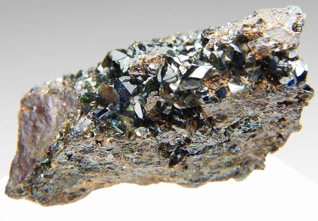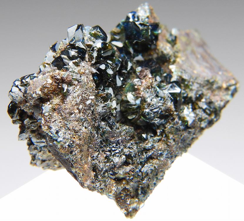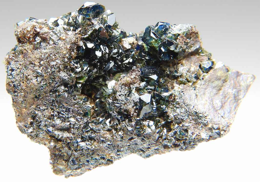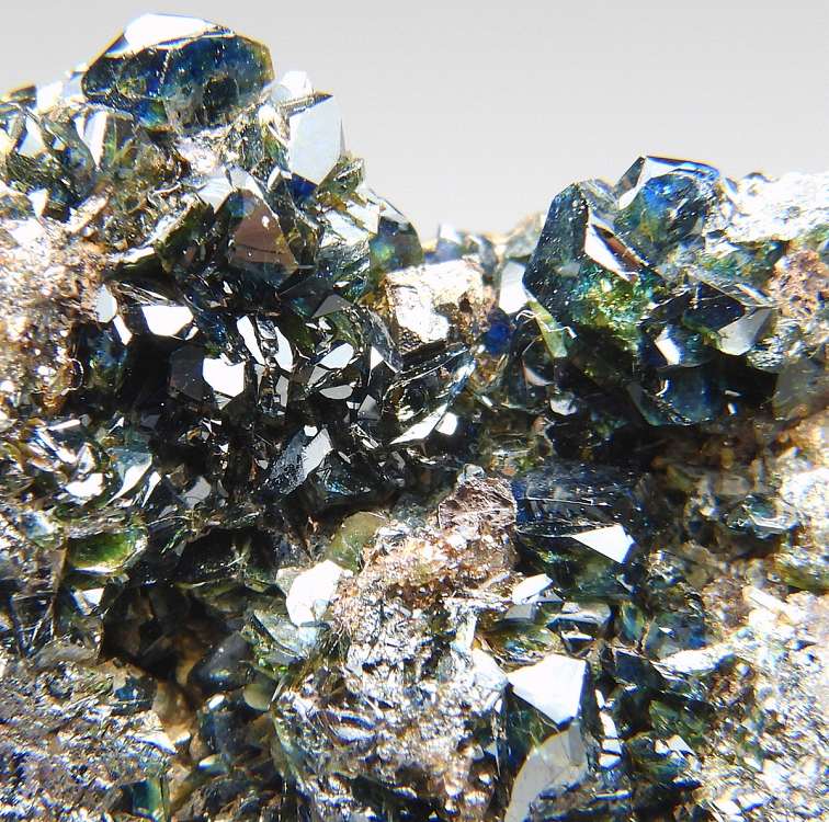 大変美しい天藍石の結晶群。透明度の高い結晶が群生します。
