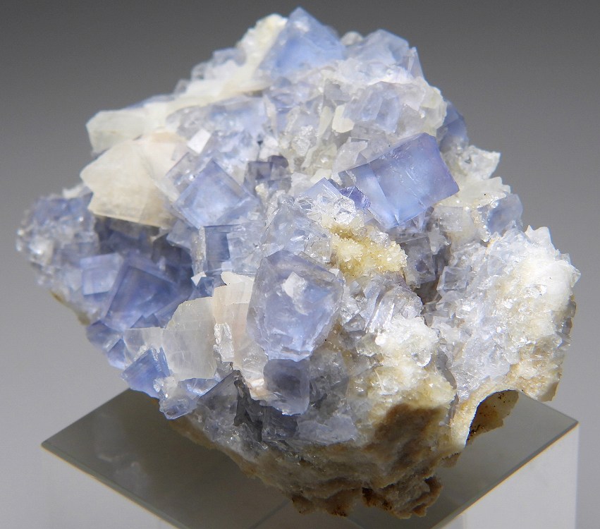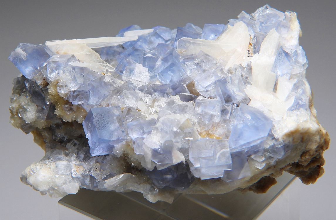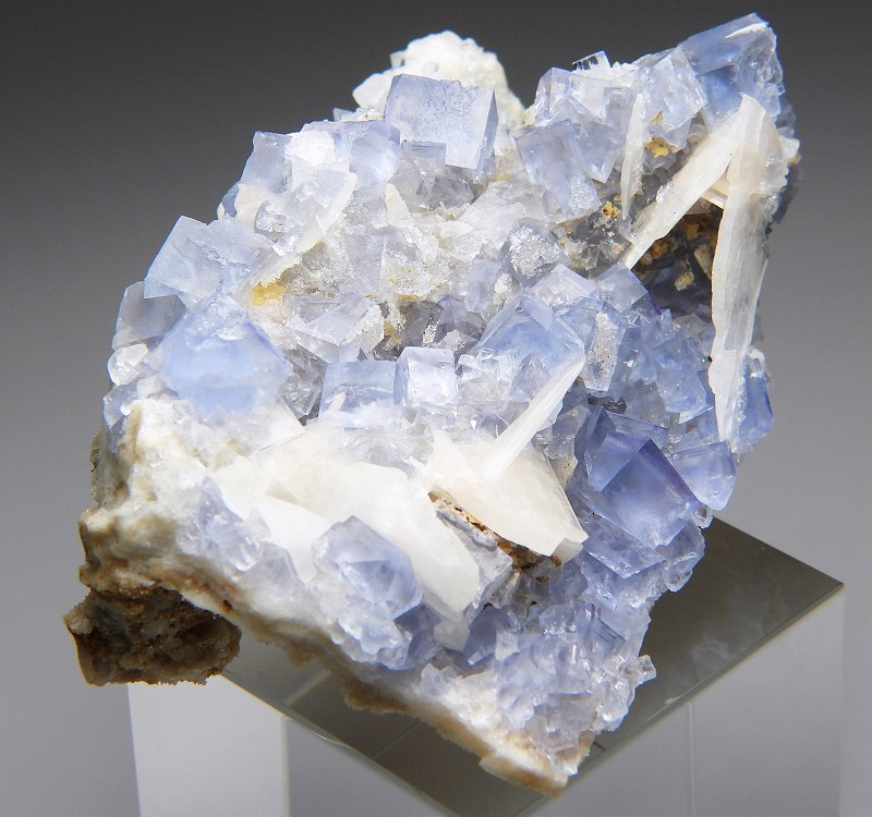 美しいブルーのビンガム産の結晶群。白熱灯下でカラーチェンジします。