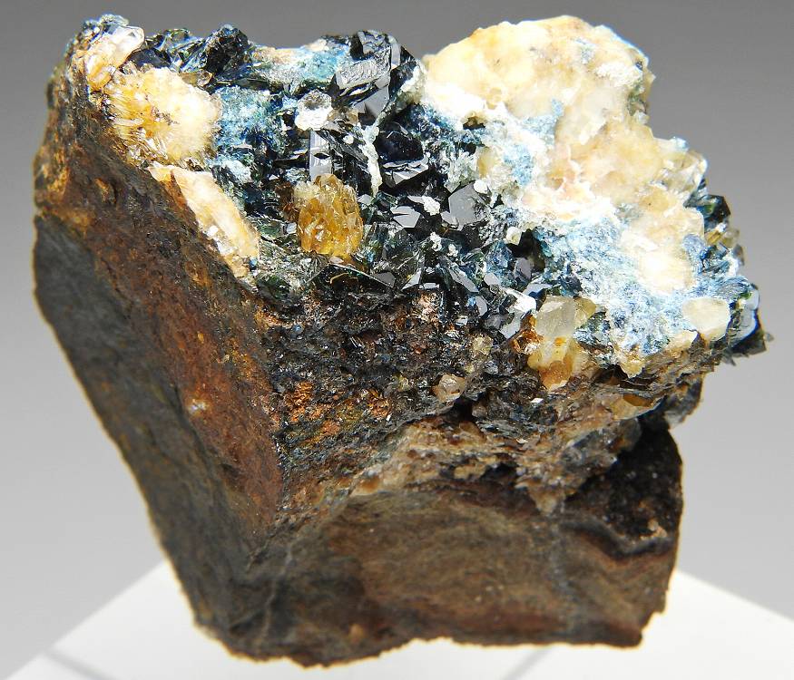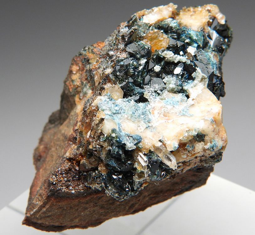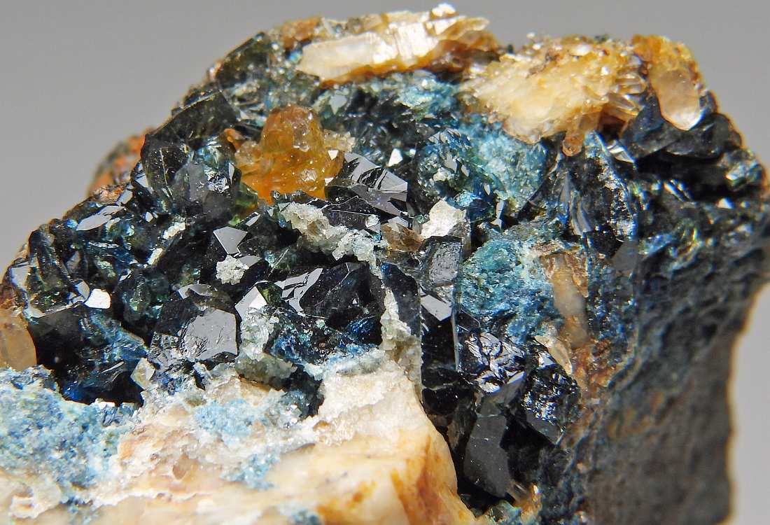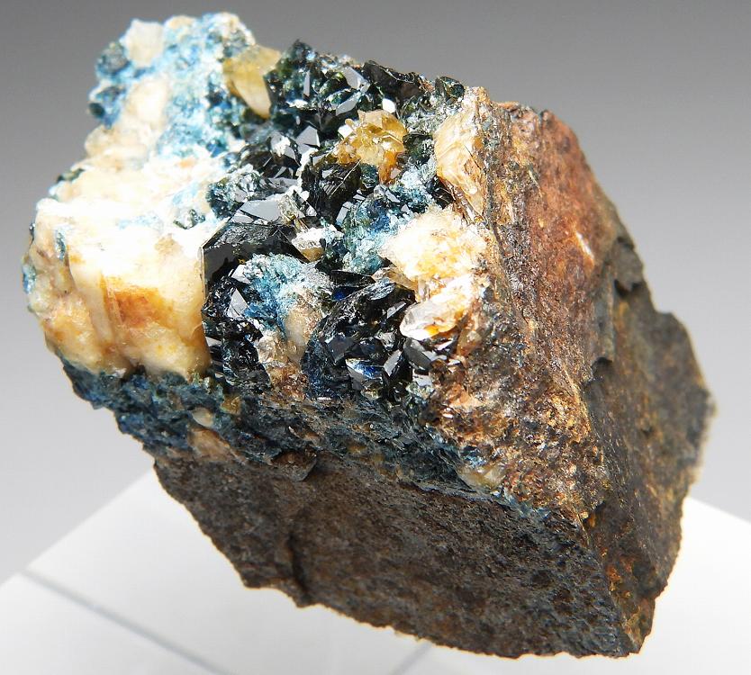 大変美しい天藍石の結晶群。透明度の高い結晶が群生します。
