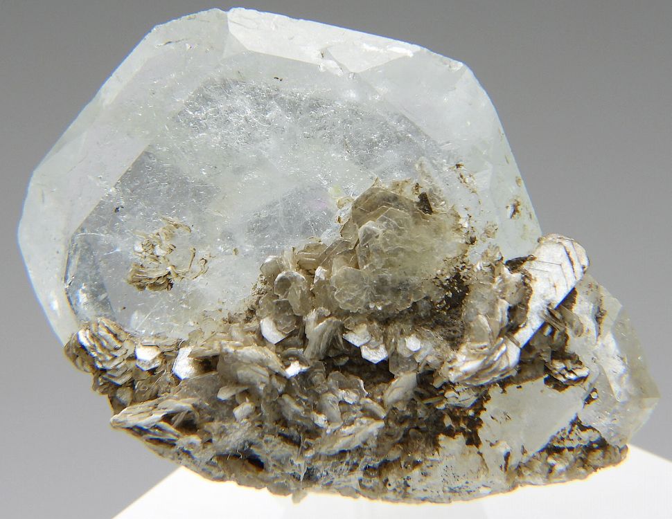 白雲母を伴ったゴシェナイト。この産地でよく見られる六角平板状結晶です。