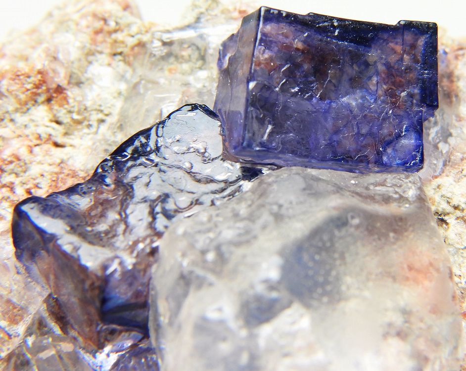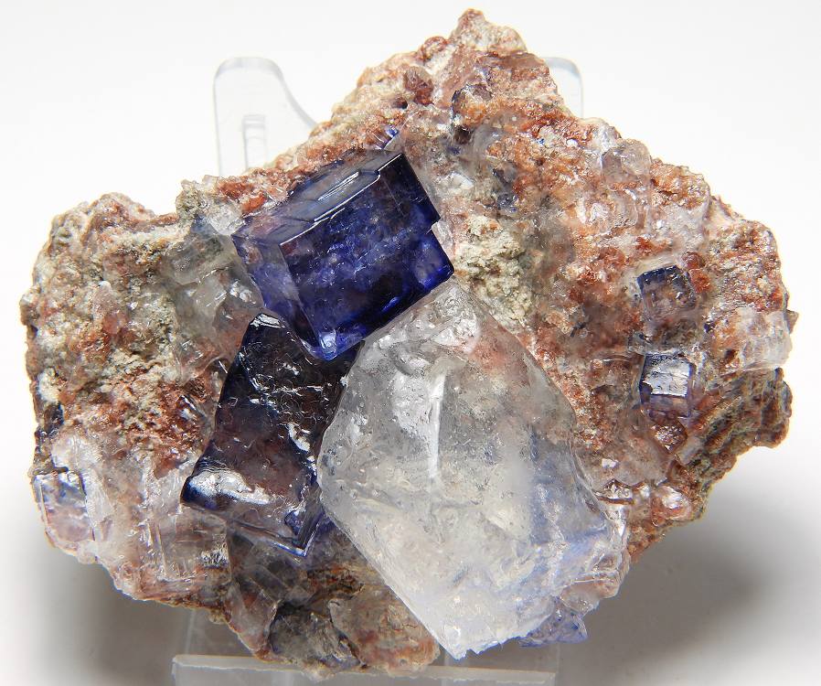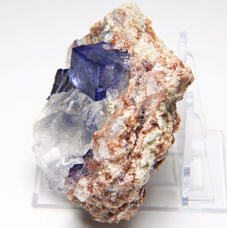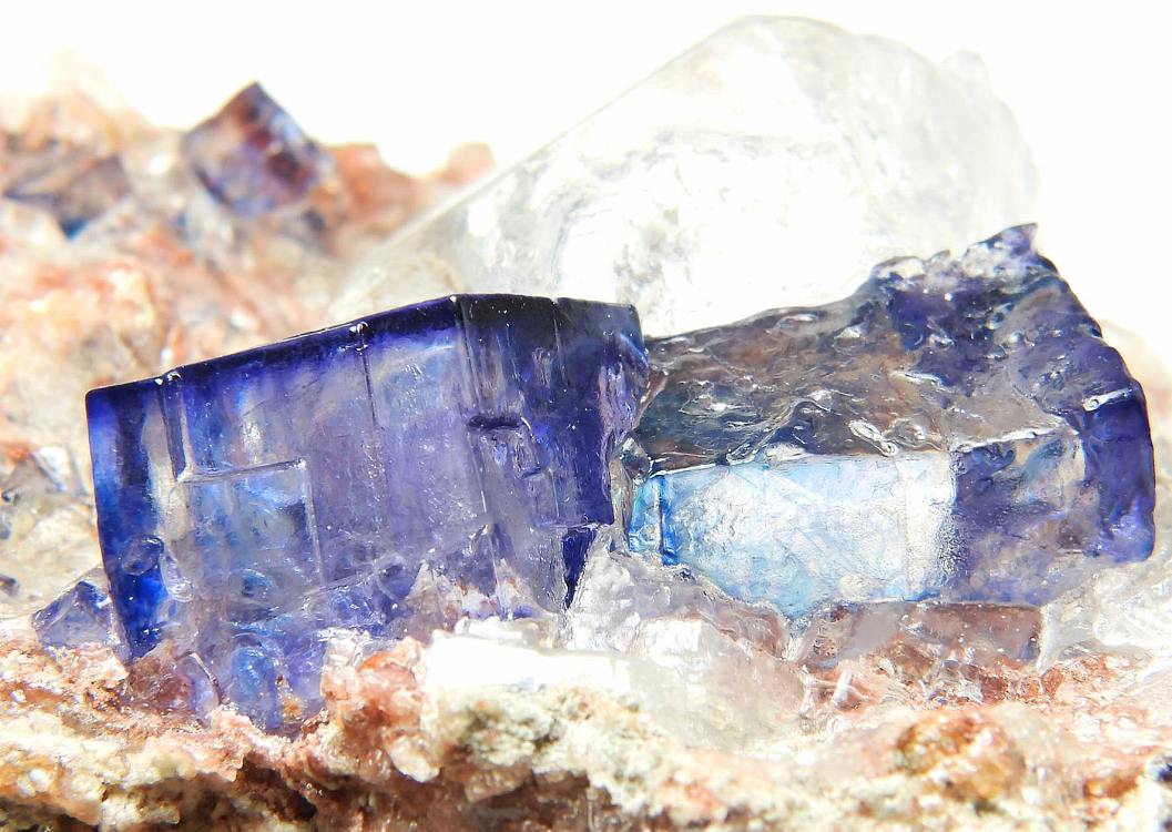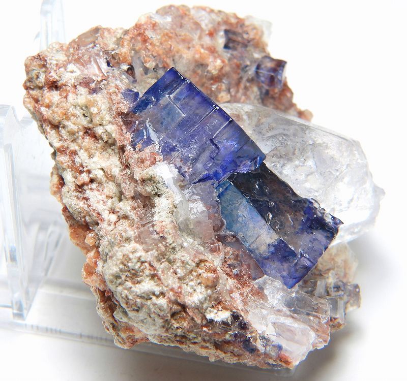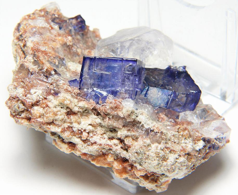 透明なシルビン結晶と共生した美しいブルー岩塩の結晶です。キャビネットサイズ。