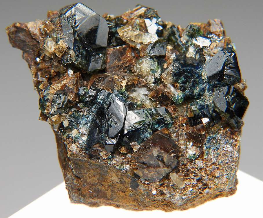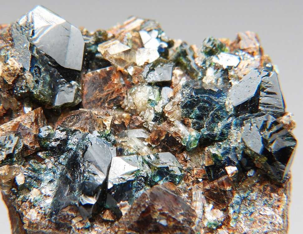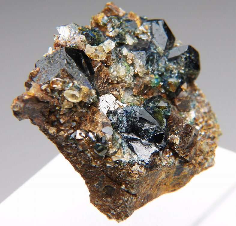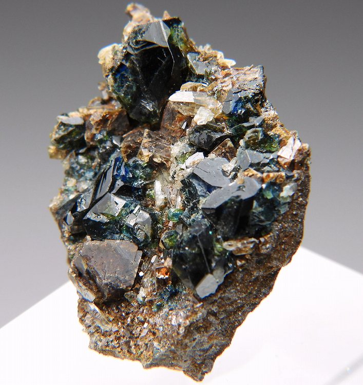大変美しい天藍石の結晶群。透明度の高い結晶が群生します。