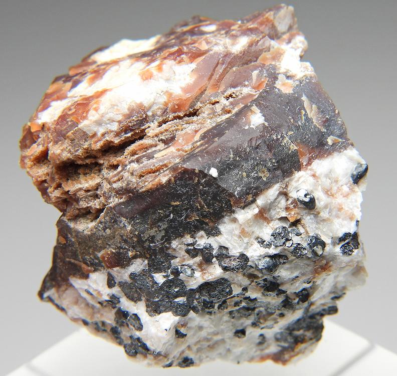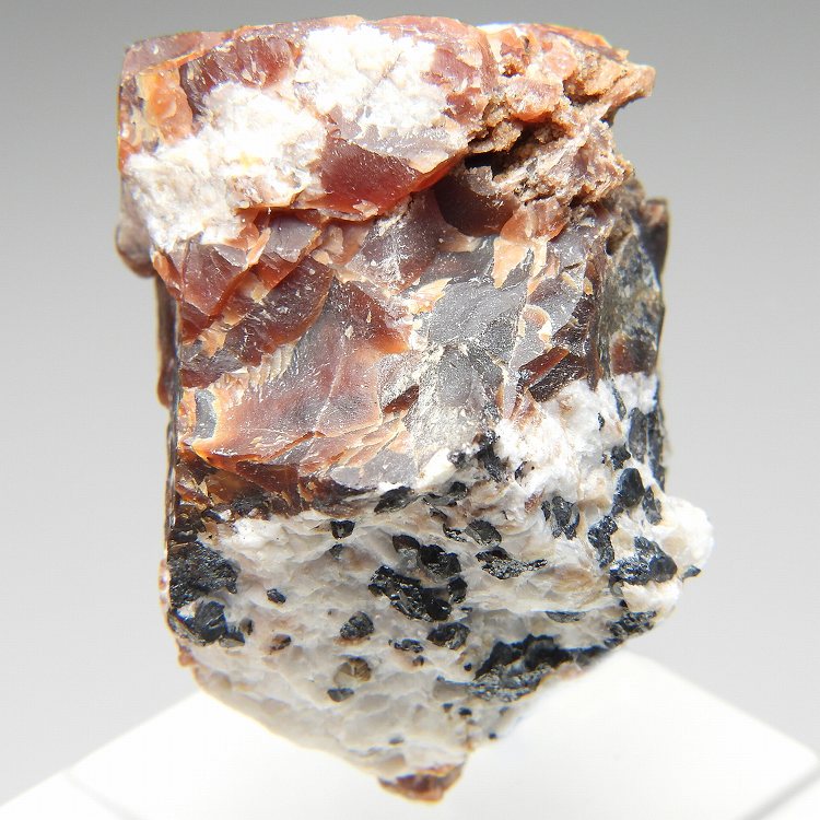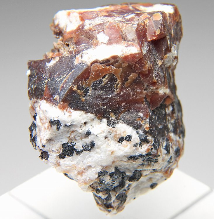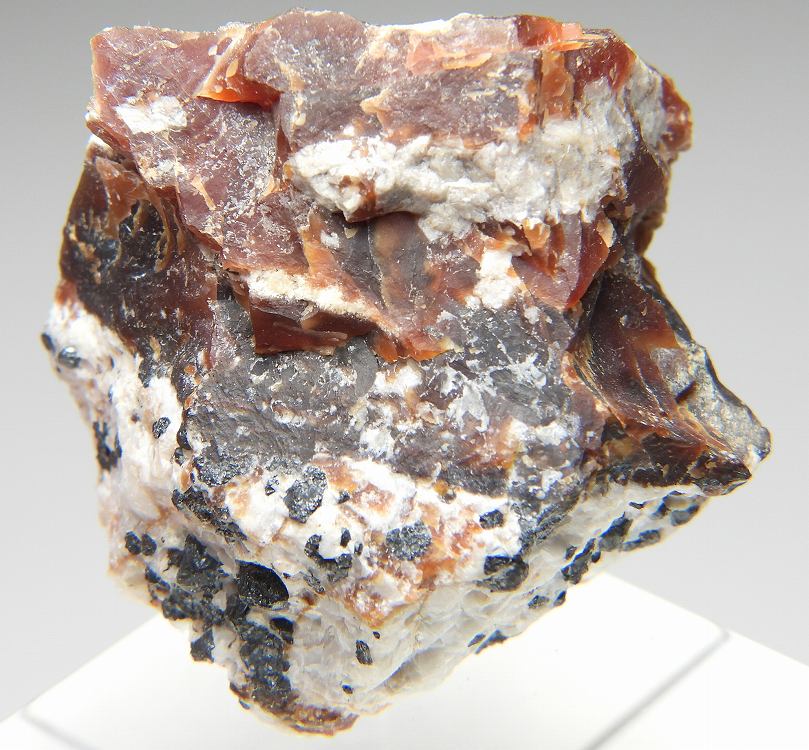 透過性のあるフリーデライトのリッチな標本。フランクリン鉄鉱やカルサイトが伴います。